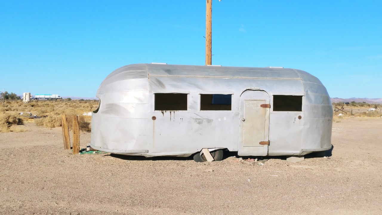 사막의 해를 받은 바그다드 카페 전체 건물 모습이다.