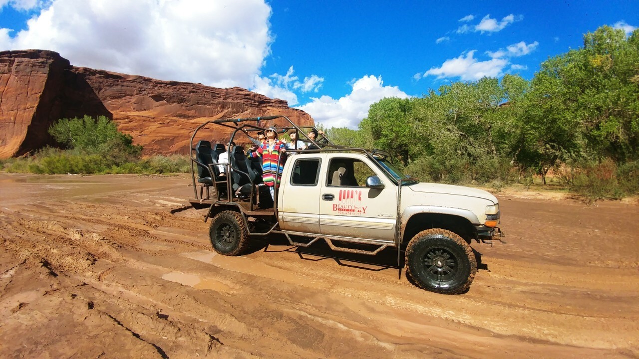 나바호 인디언 가이드가 운전하는 사륜 구동 짚차를 이용해서 가이드의
