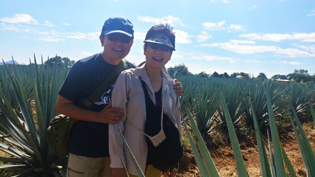 아가베 밭 중앙에 선 우리 부부 모습이다.