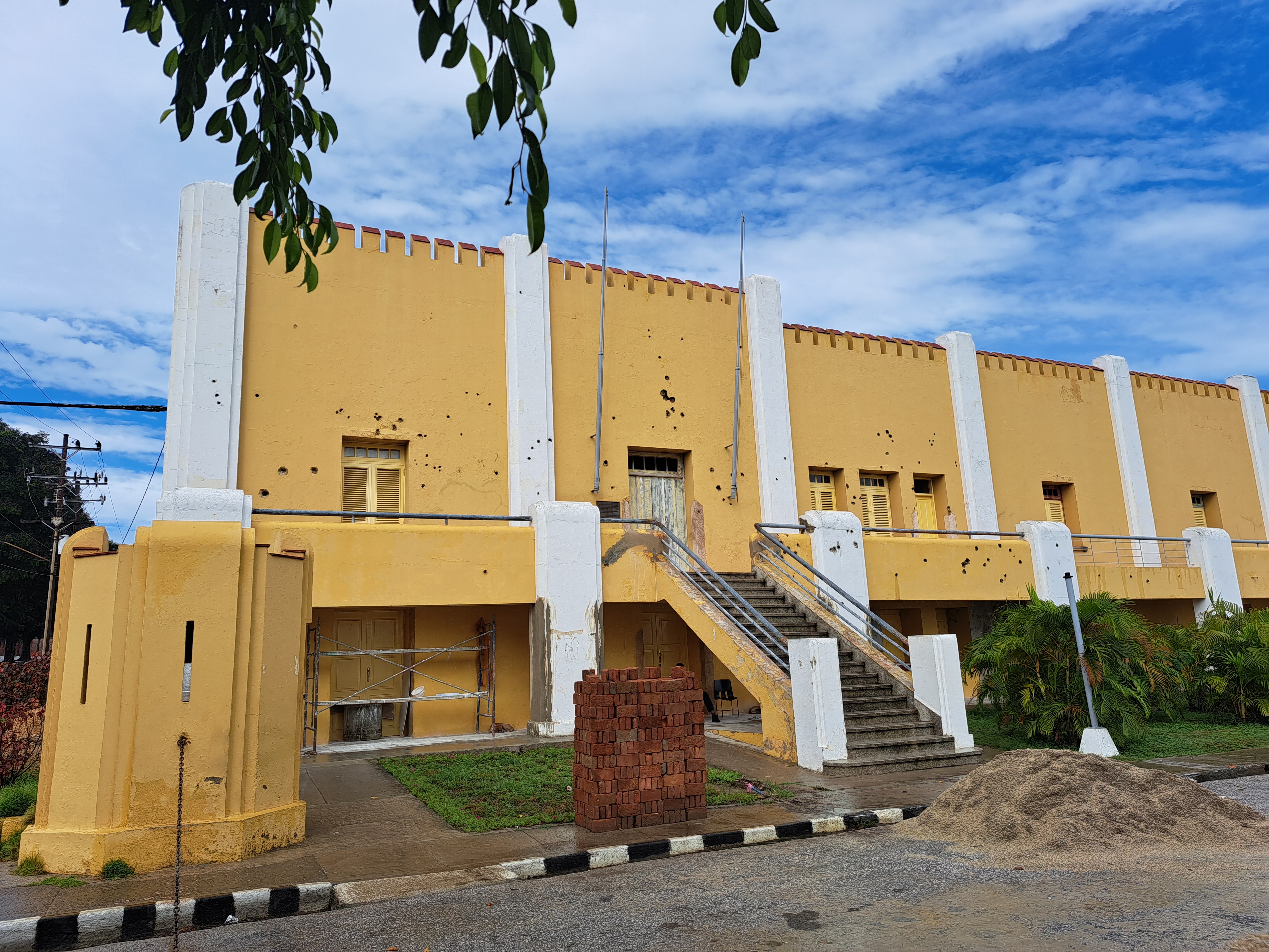 몬카다 병영 앞으로 왔다. 건물에는 그 당시 총탄 흔적이 보인다.
