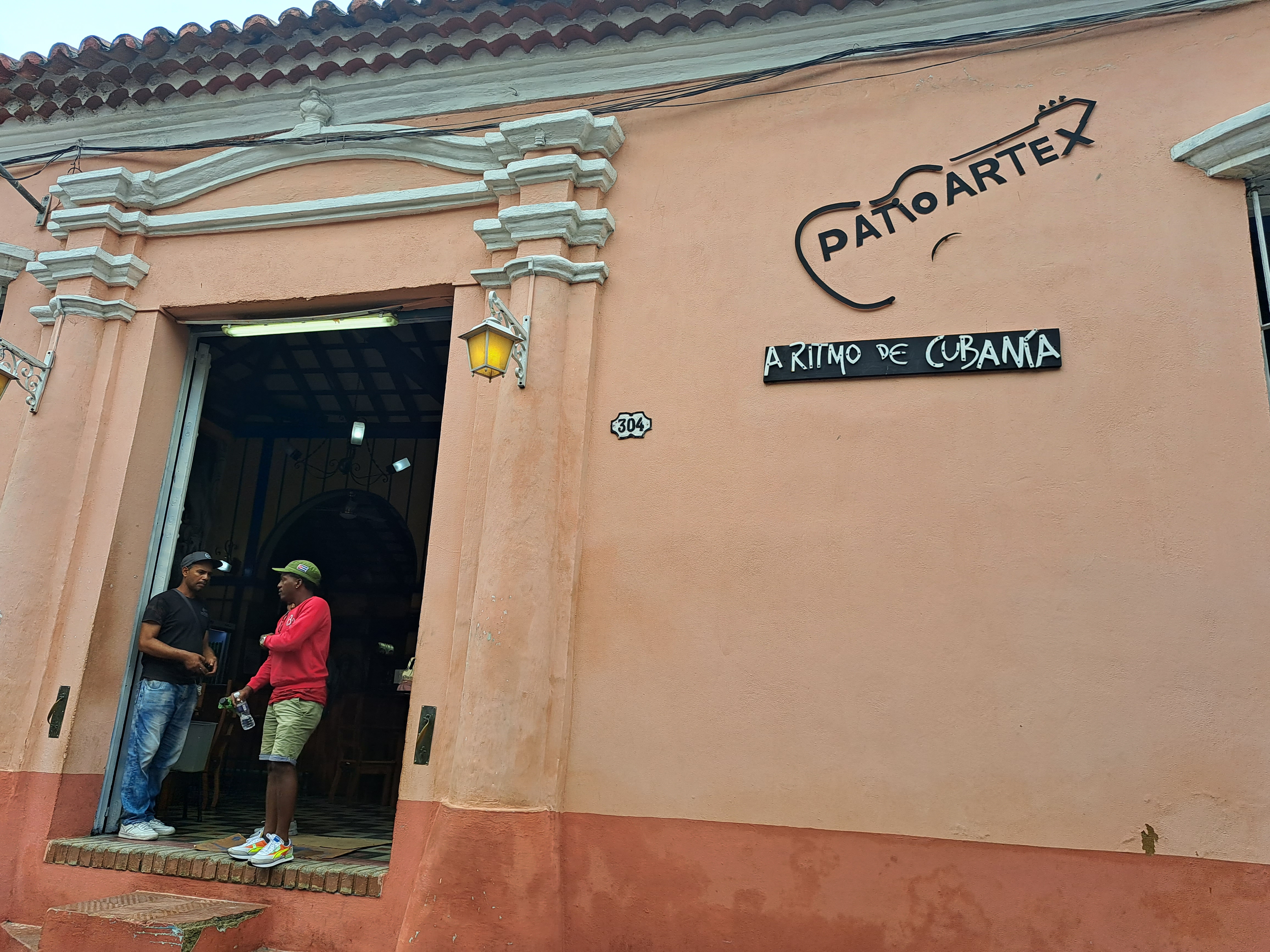"La Casa de la Trova"라는 간판이 주방 쪽에 보인다.