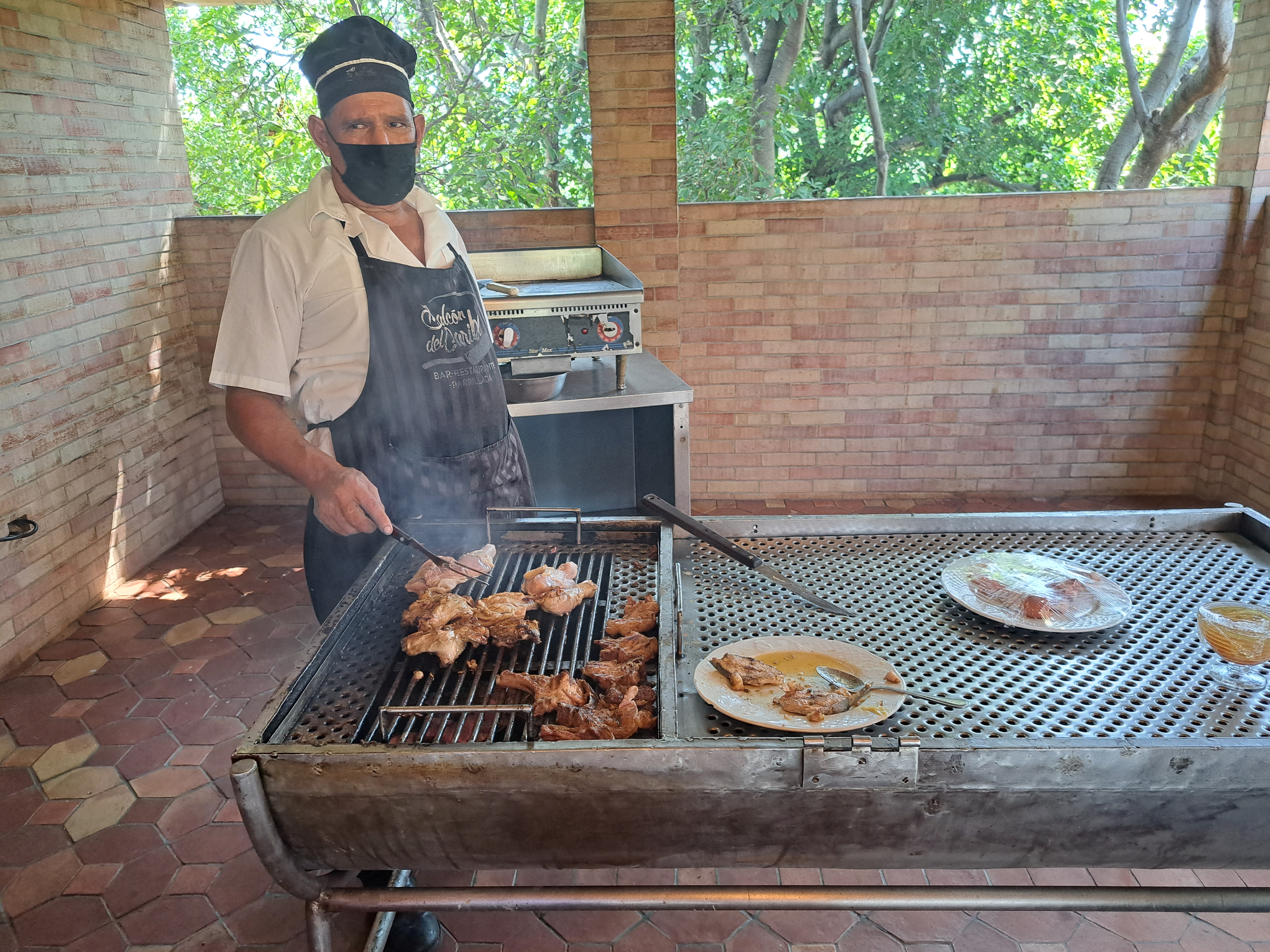 바비큐 종류는 돼지고기, 닭고기 그리고 생선구이가 있다.