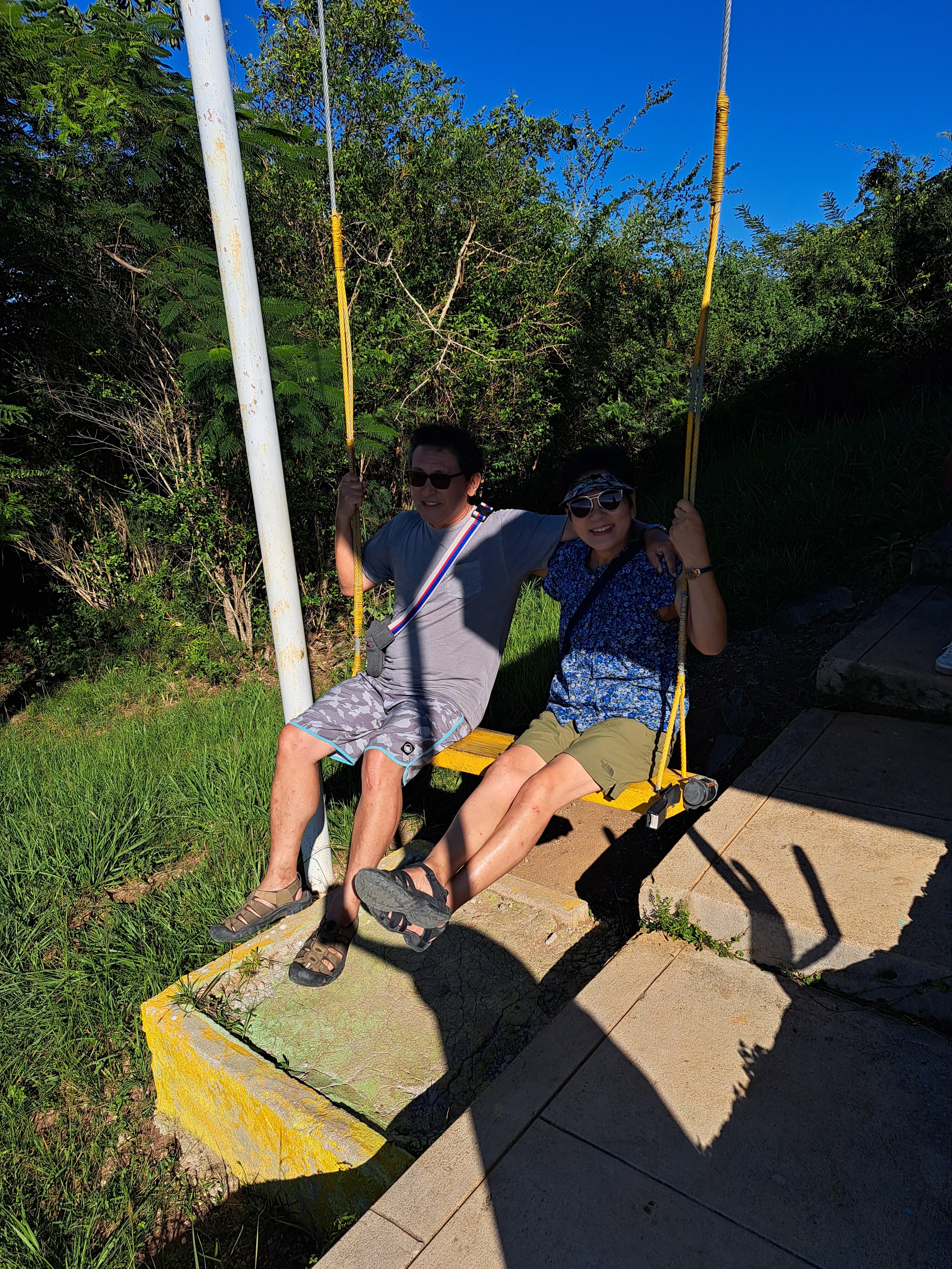 또한 밝은 표정으로 그네에 함께 올라 앉아서 자연을 내려다 본다.