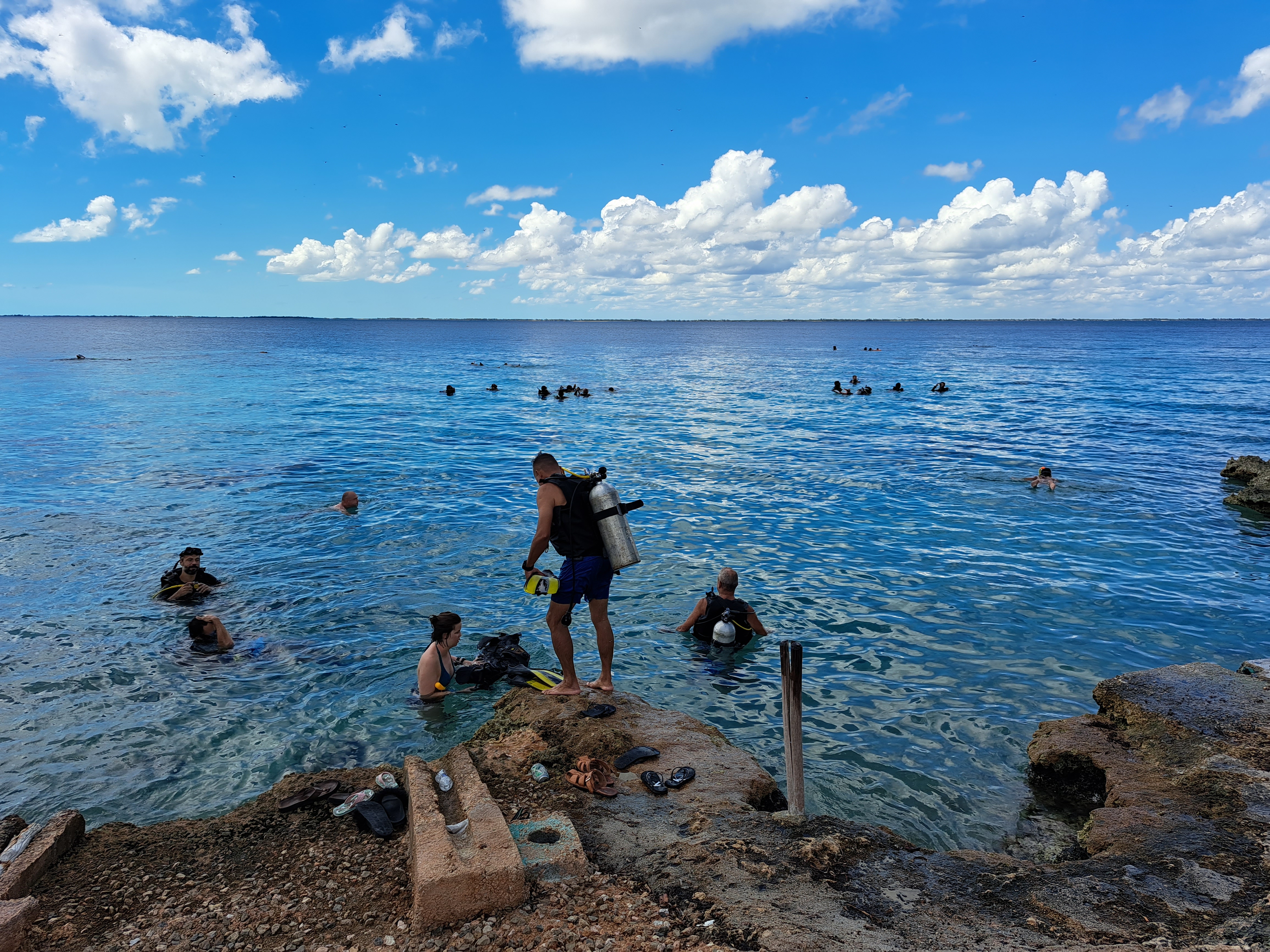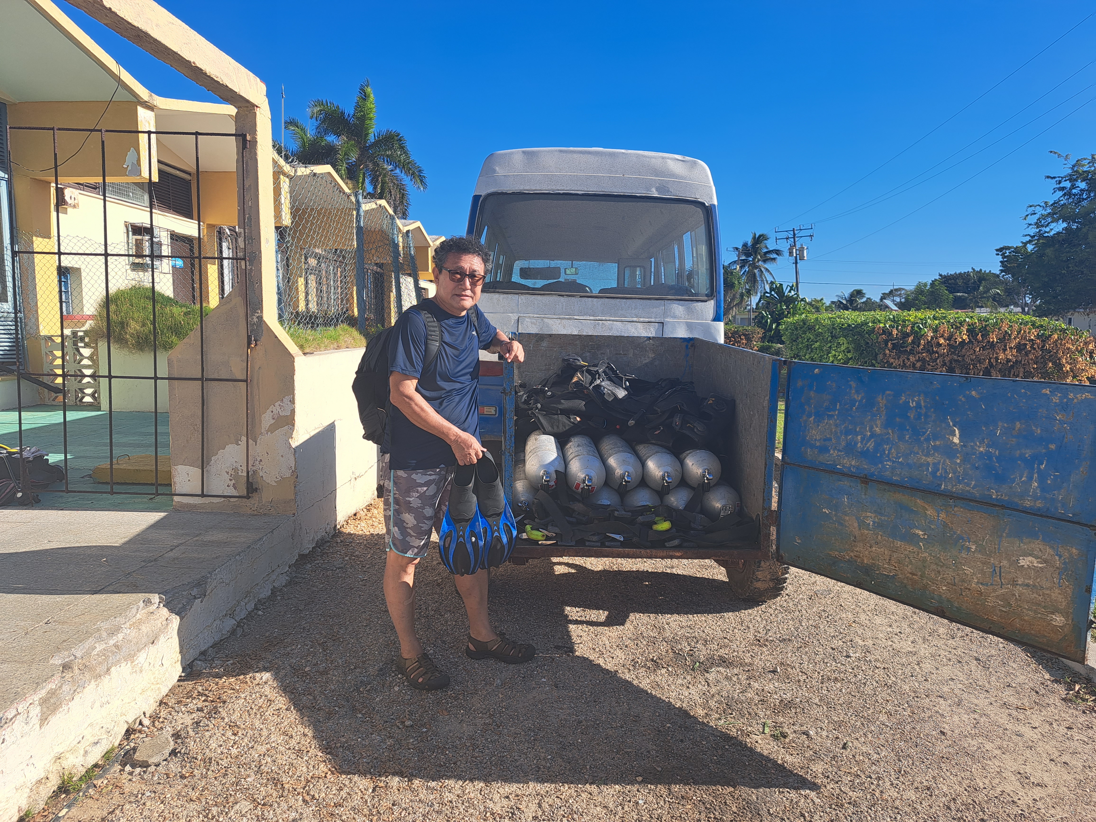 대형 관광버스가 보여서 알아보니 바라데로에서 다이빙을 하러 온 관광버스이다.
