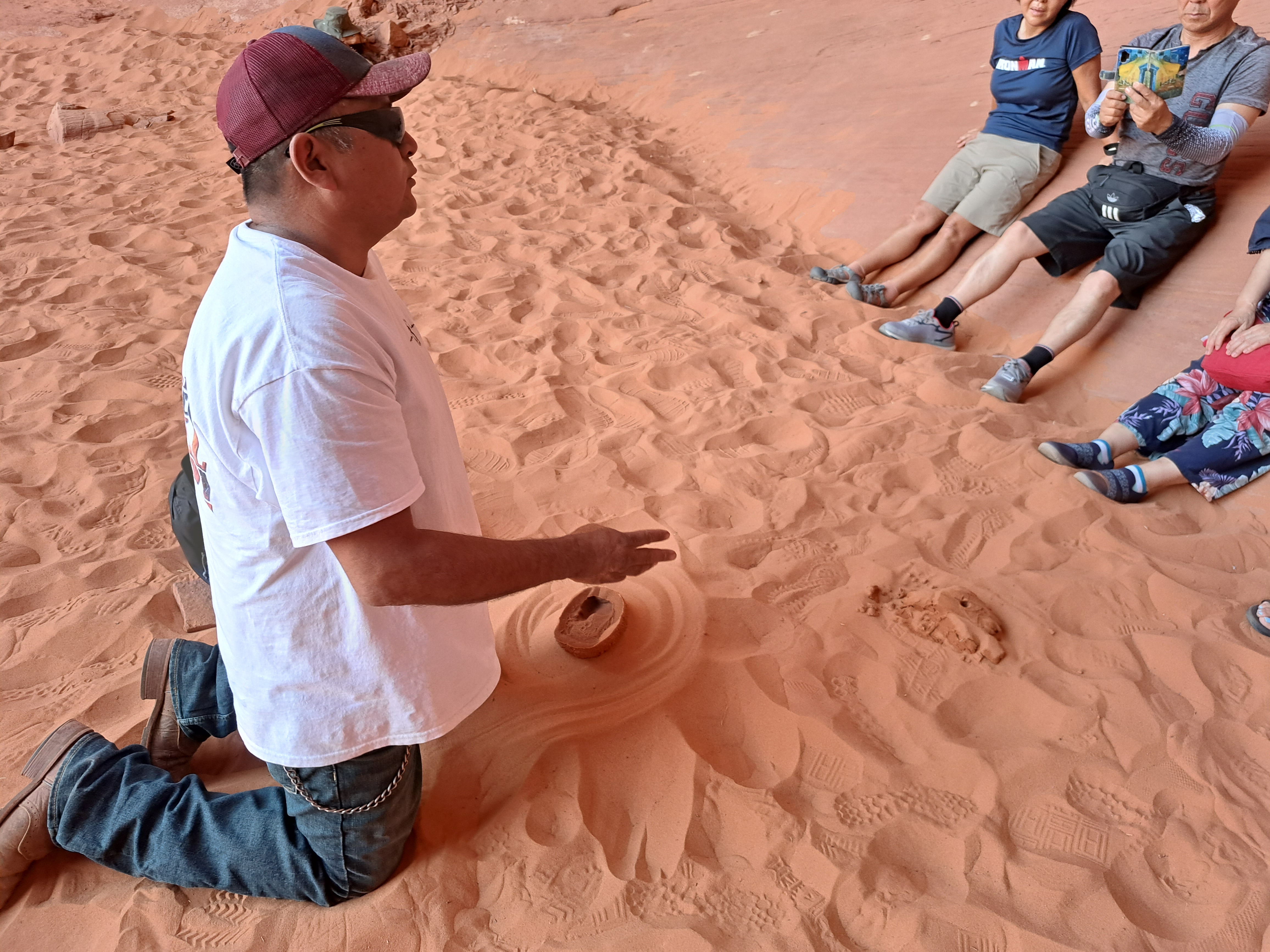 구멍이 만들어진 과정을 나바호 가이드는 설명합니다.