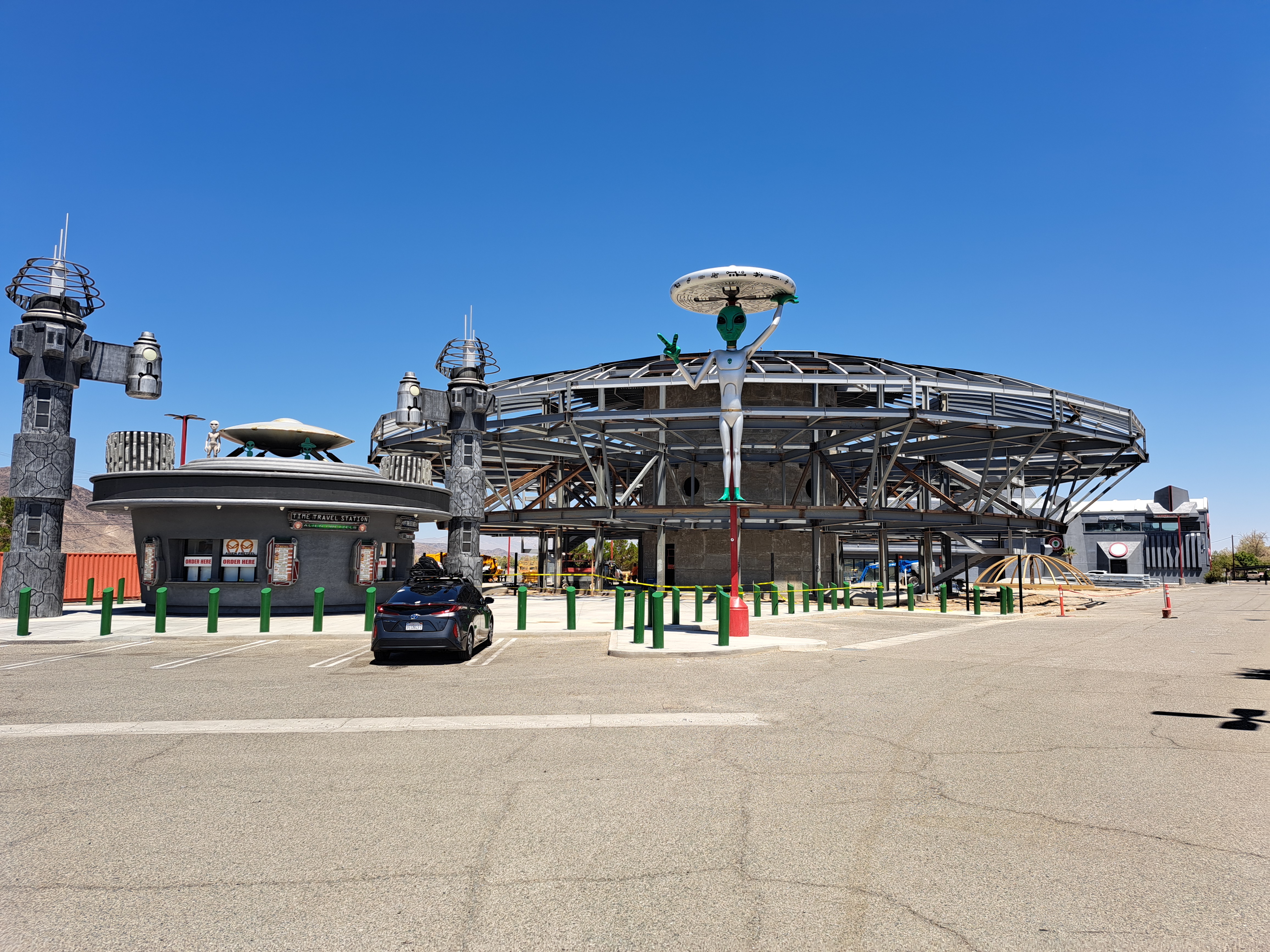 'Alien Fresh Jerky'라는 상점이 대형 우주선 모양으로 손님을 반깁니다.