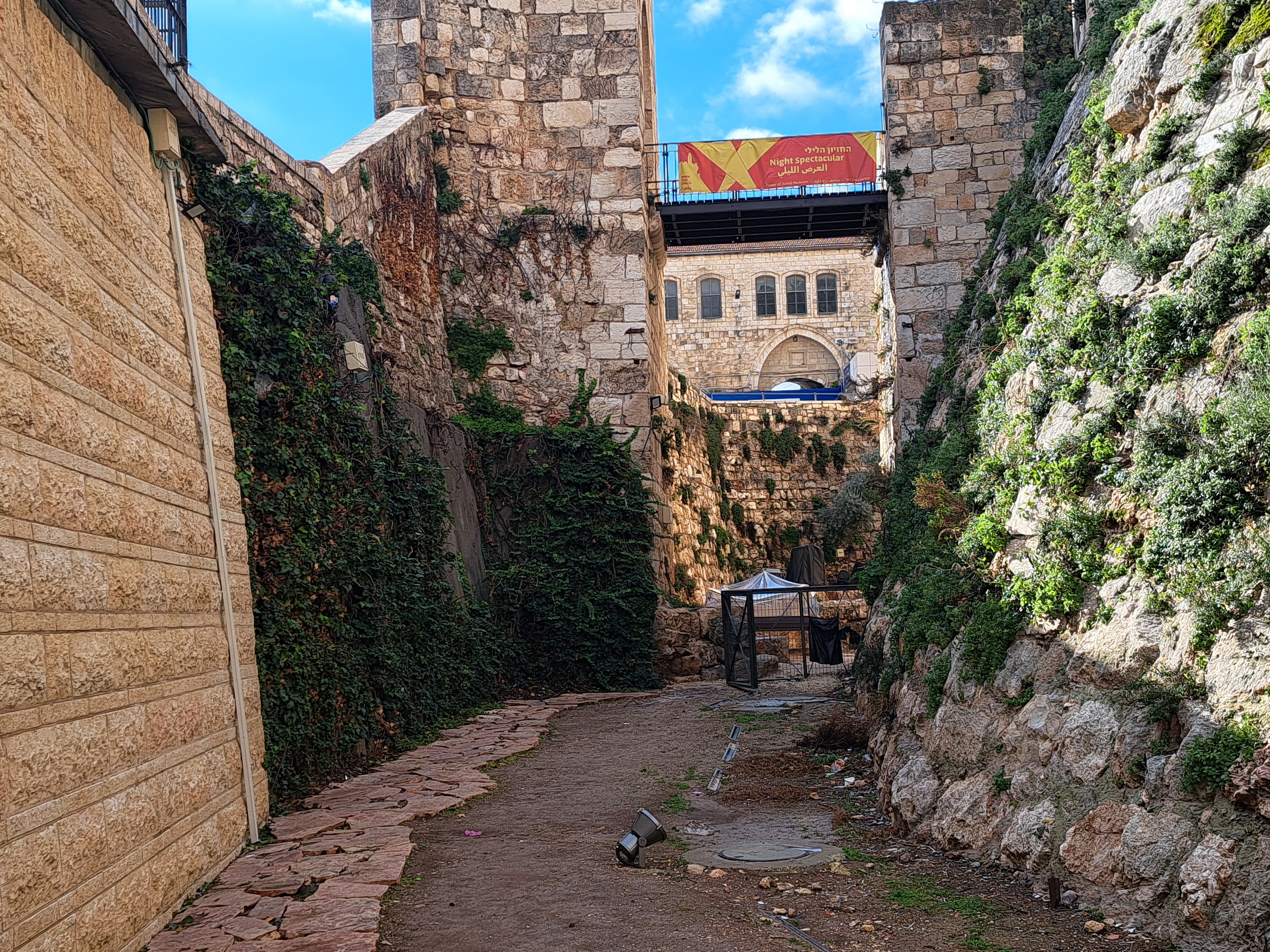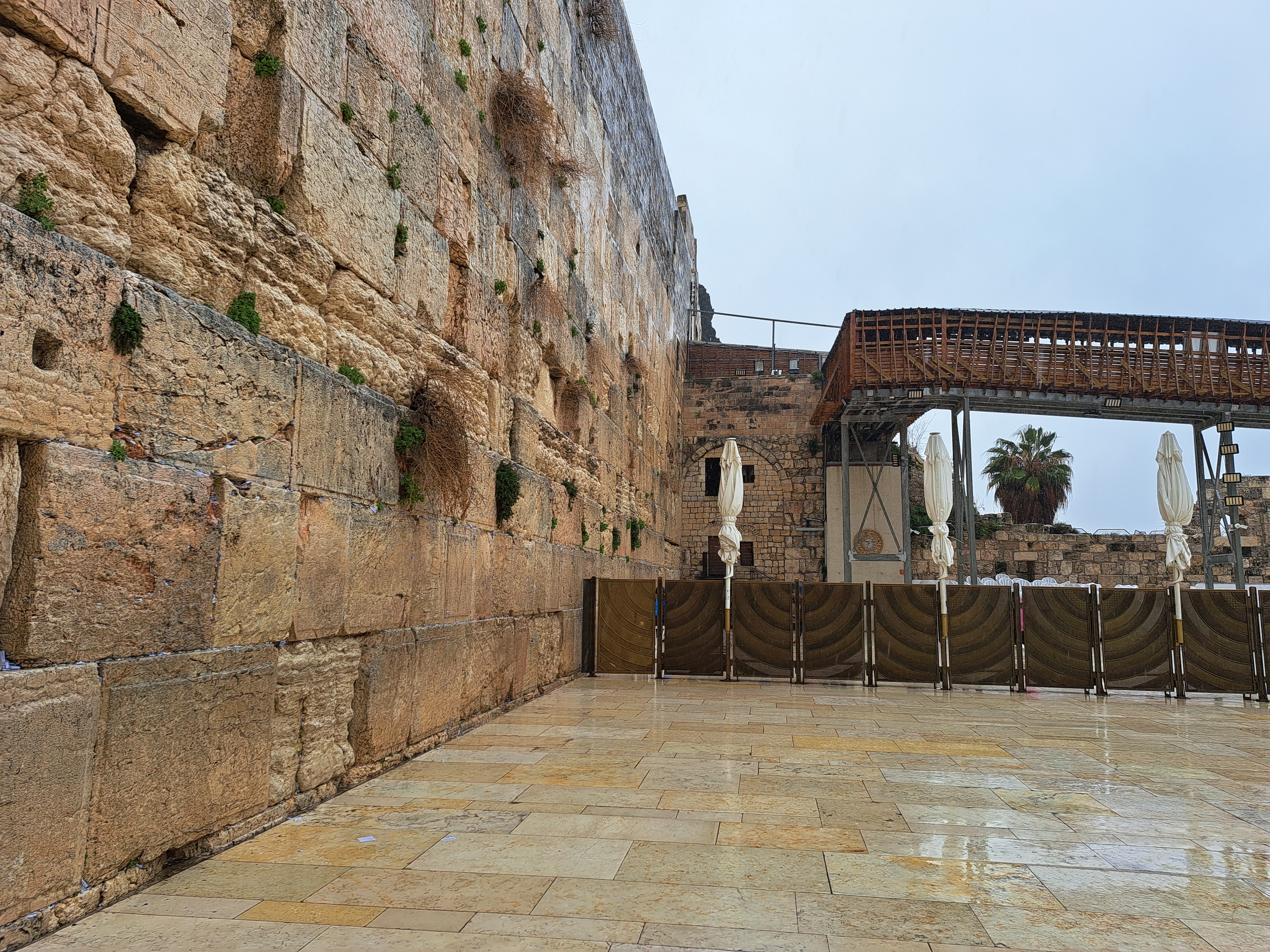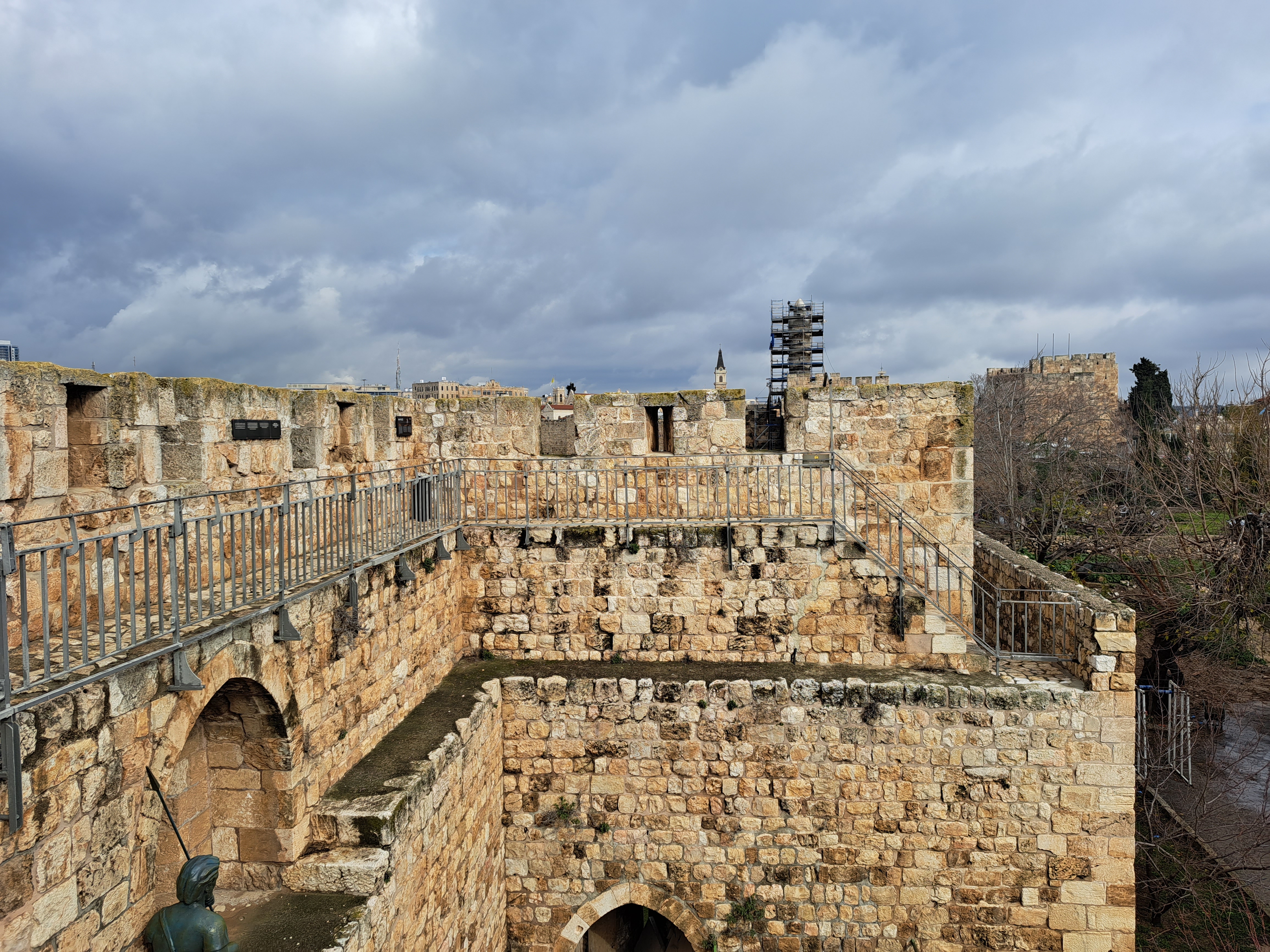 비는 계속해서 세차게 내리고 다윗의 망대는 현재 공사 중이다.