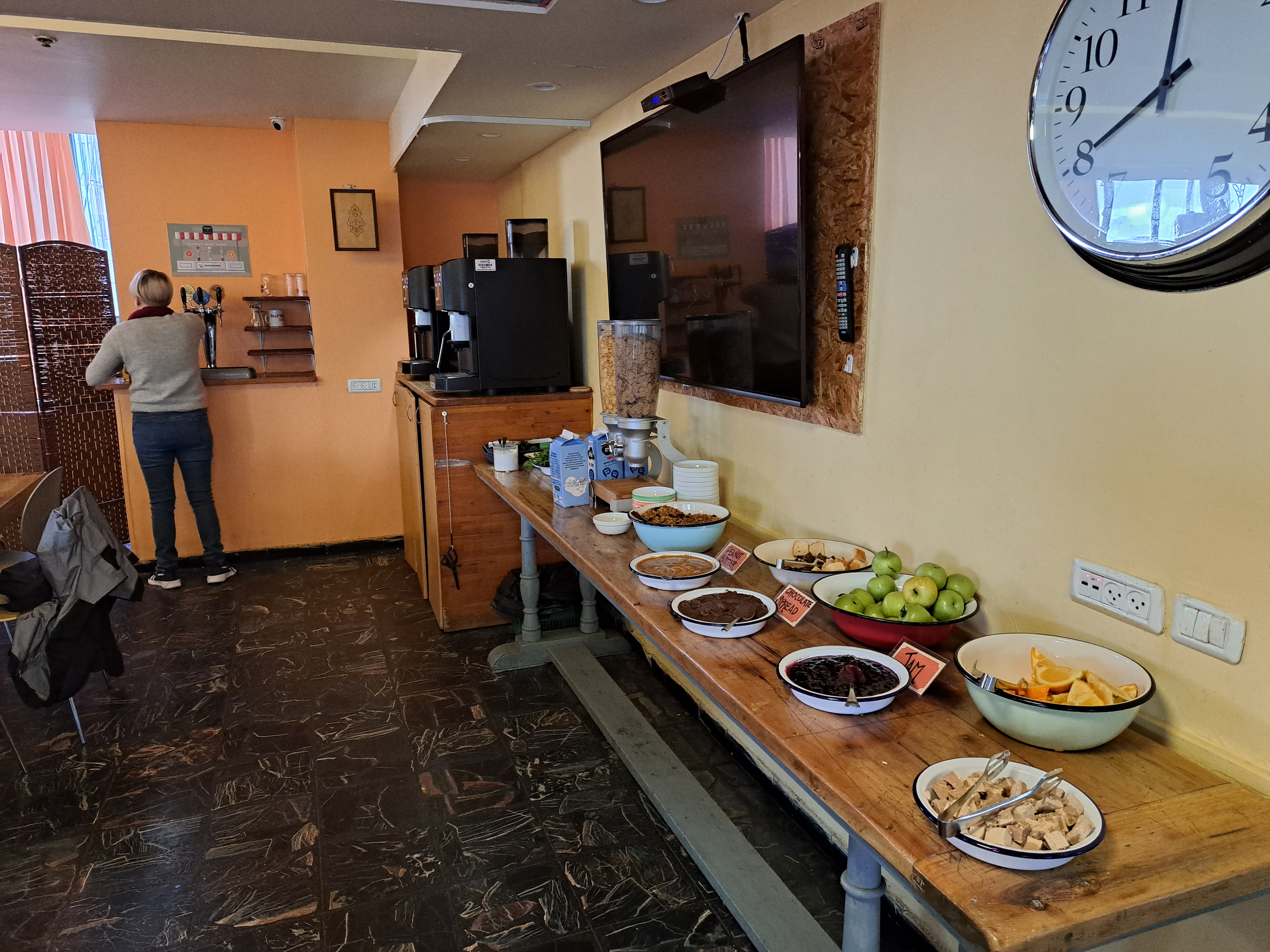 아브라함 호스텔에선 아침 식사를 이와 같이 무료로 제공한다.