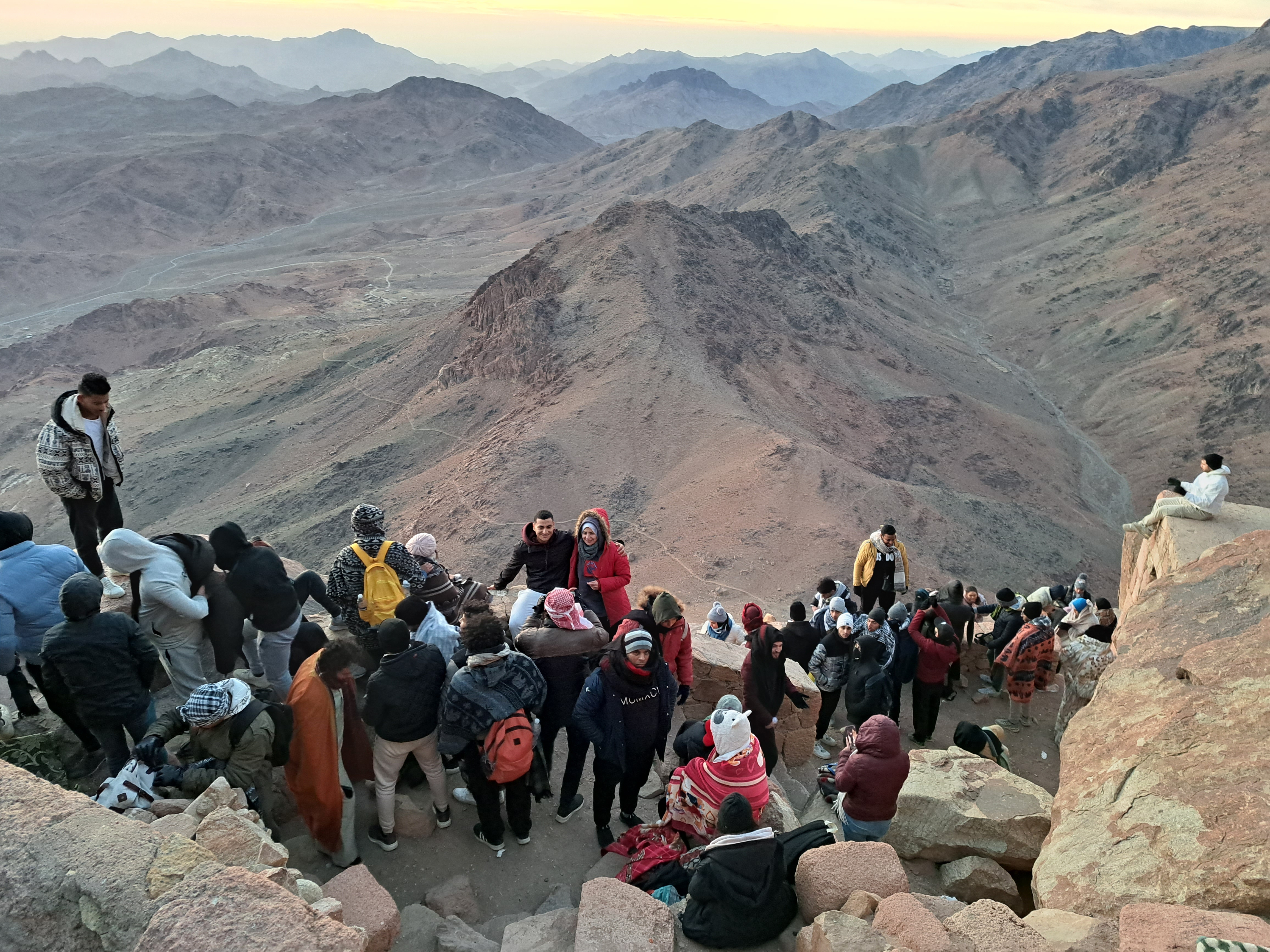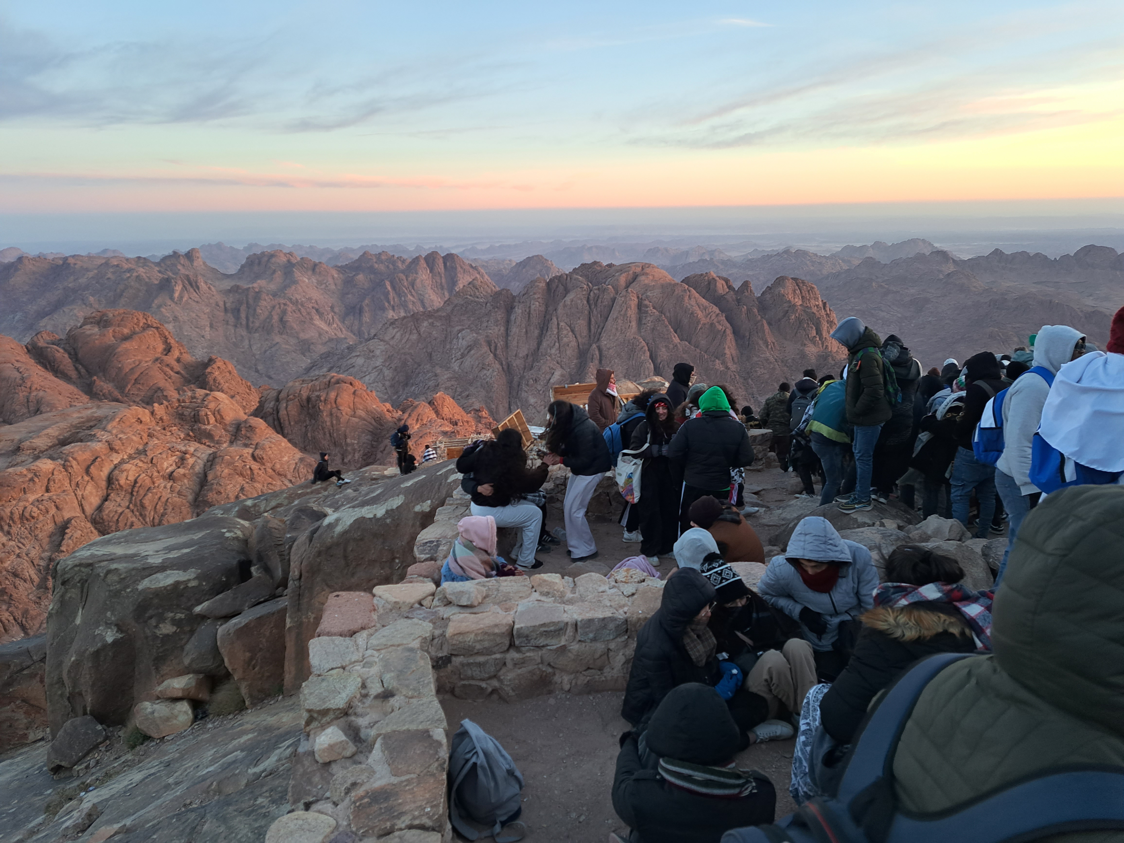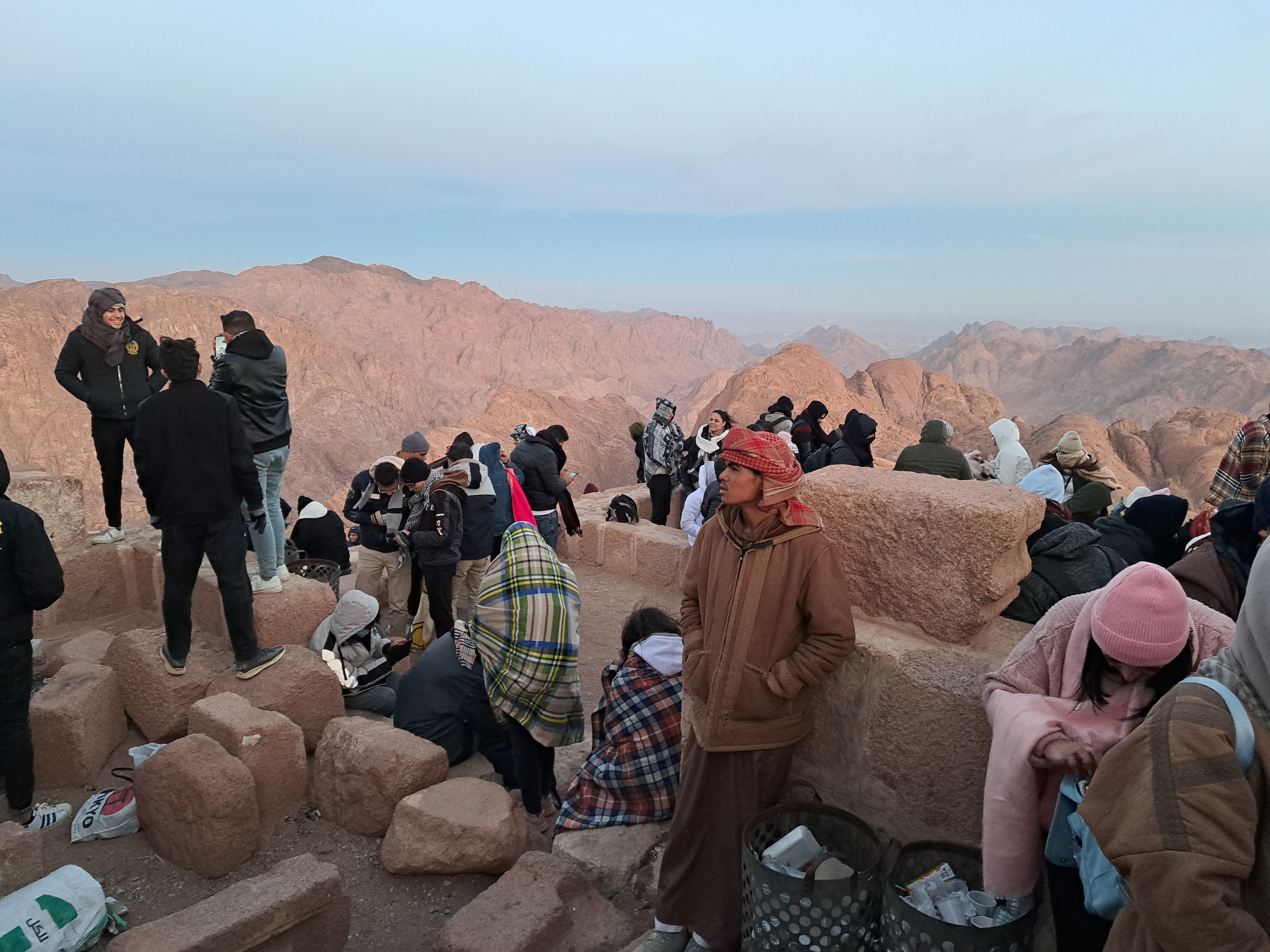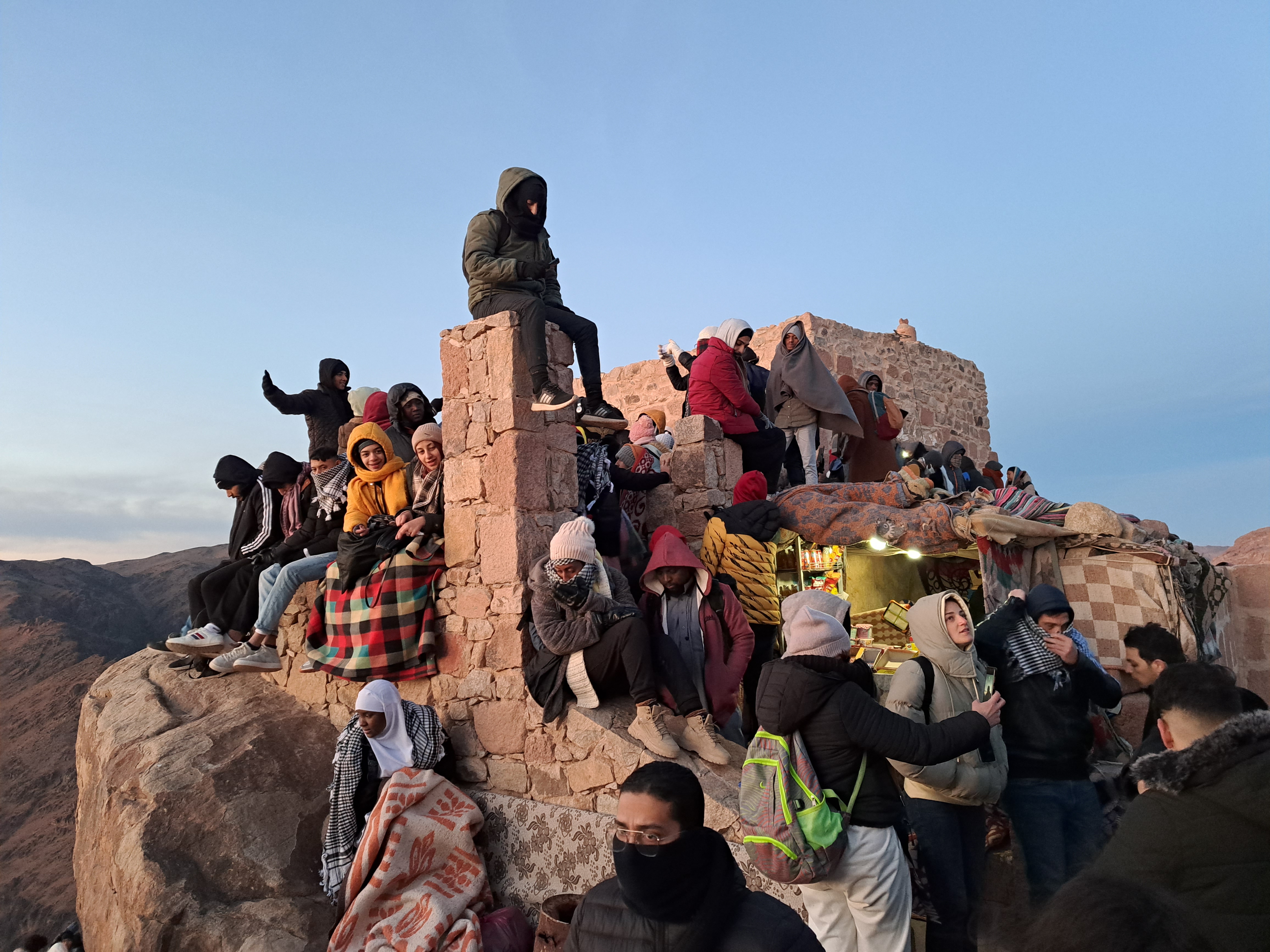 산 정상에 올라서 해 뜨는 시간을 기다리고 있다.