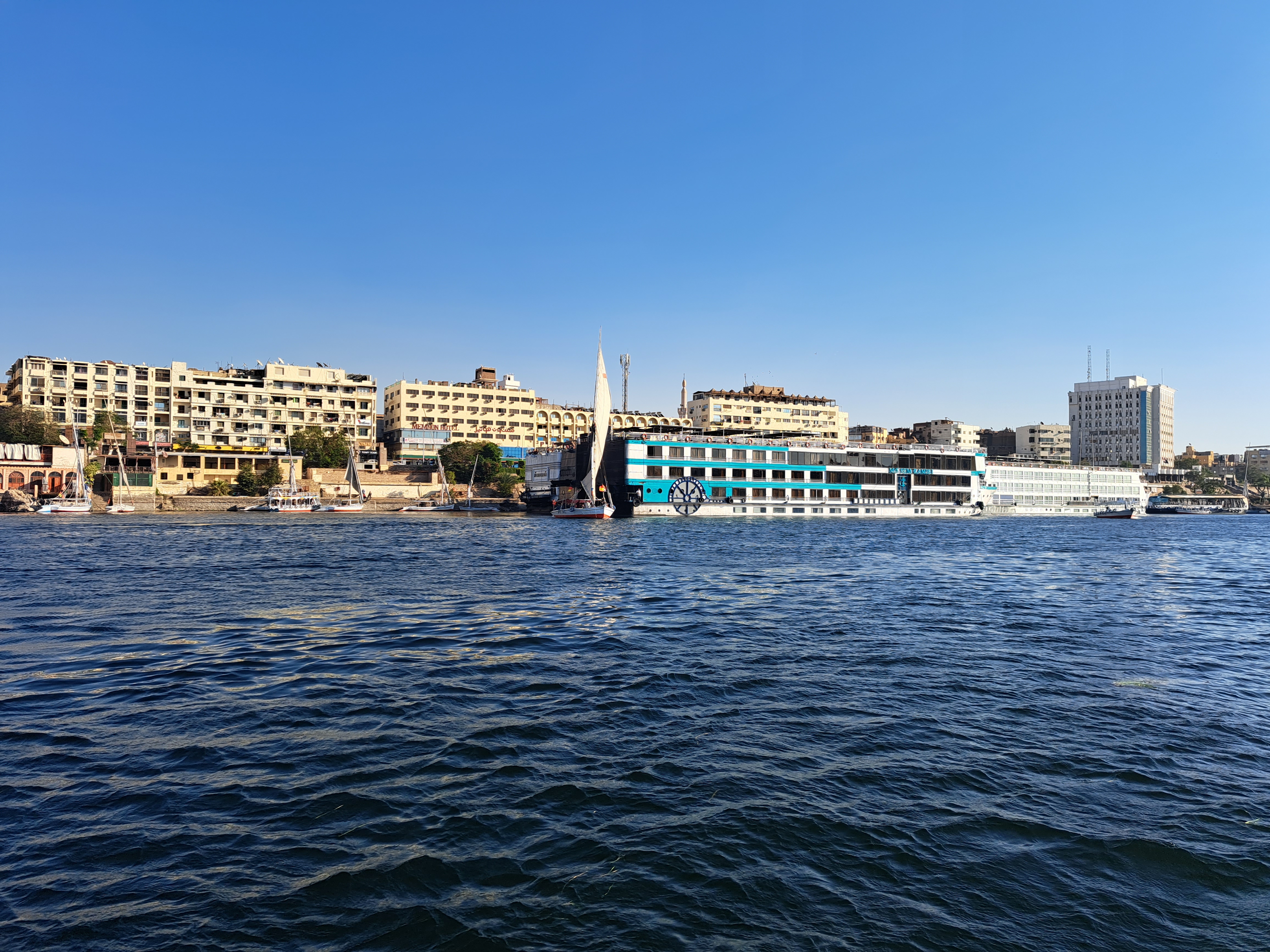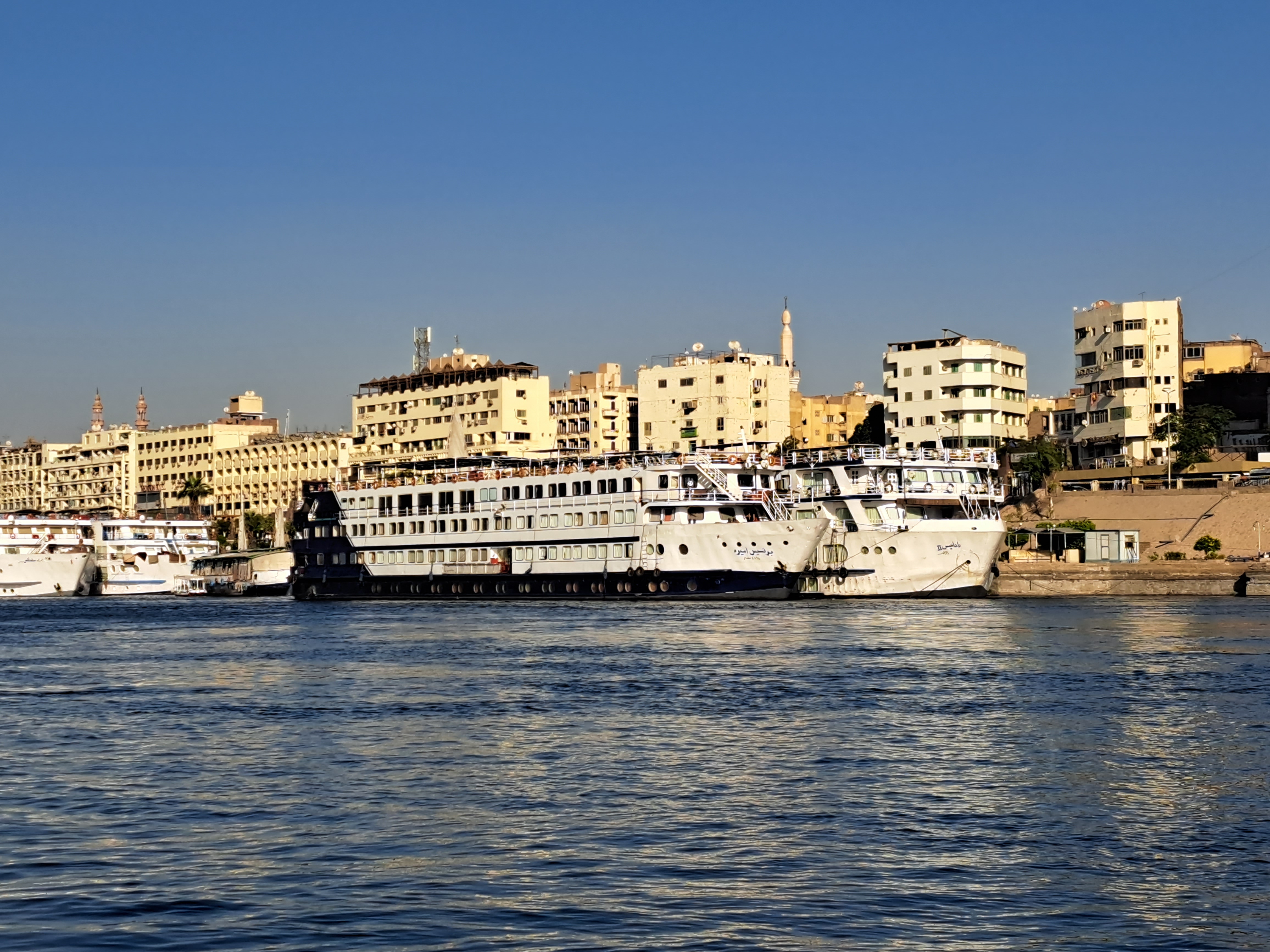 아스완 다운타운 앞에는 크루즈 선박이 줄지어 서 있다.