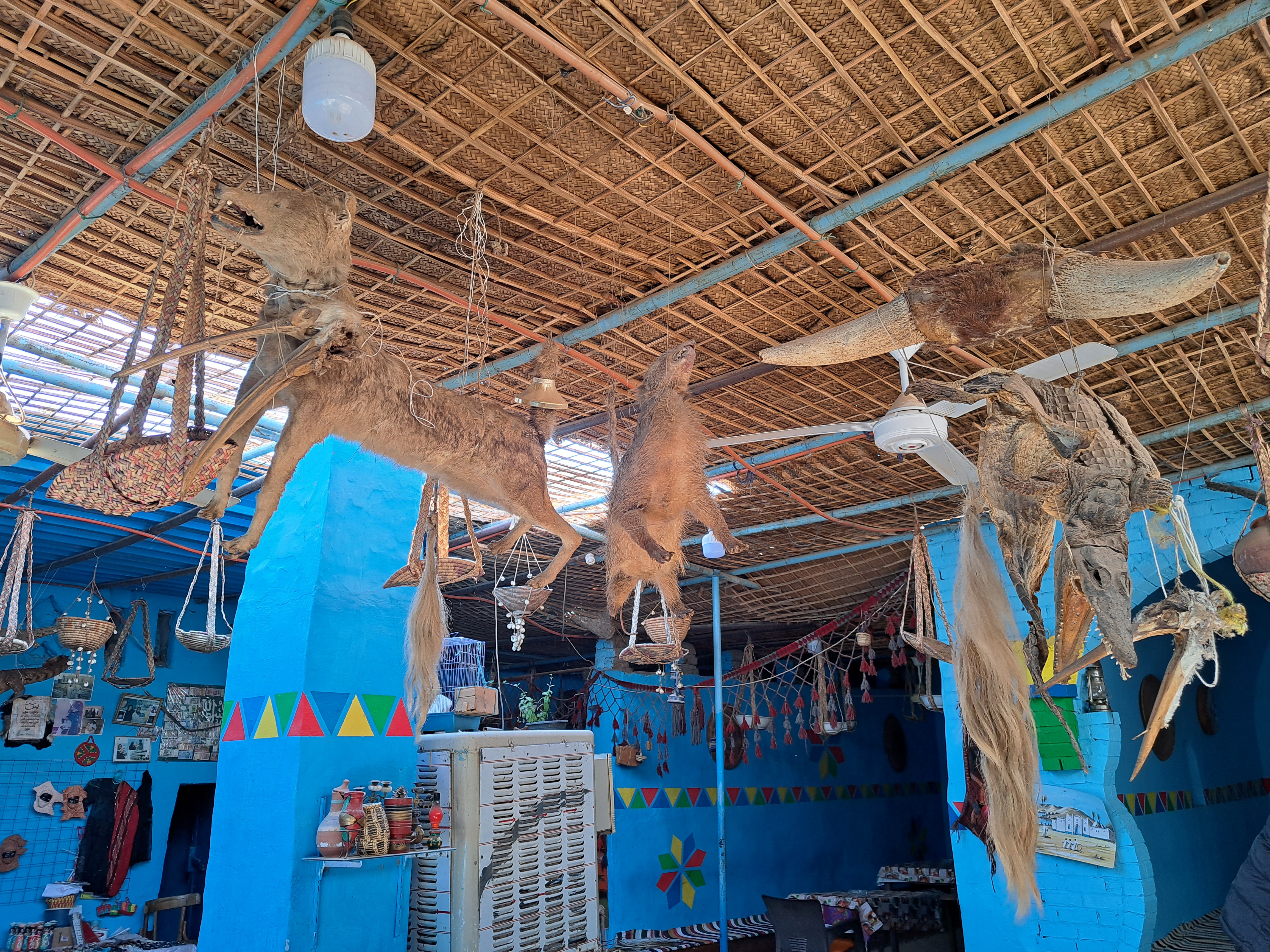 천장에는 악어는 물론이고 다른 동물들의 시원찮은 박제가 있다.
