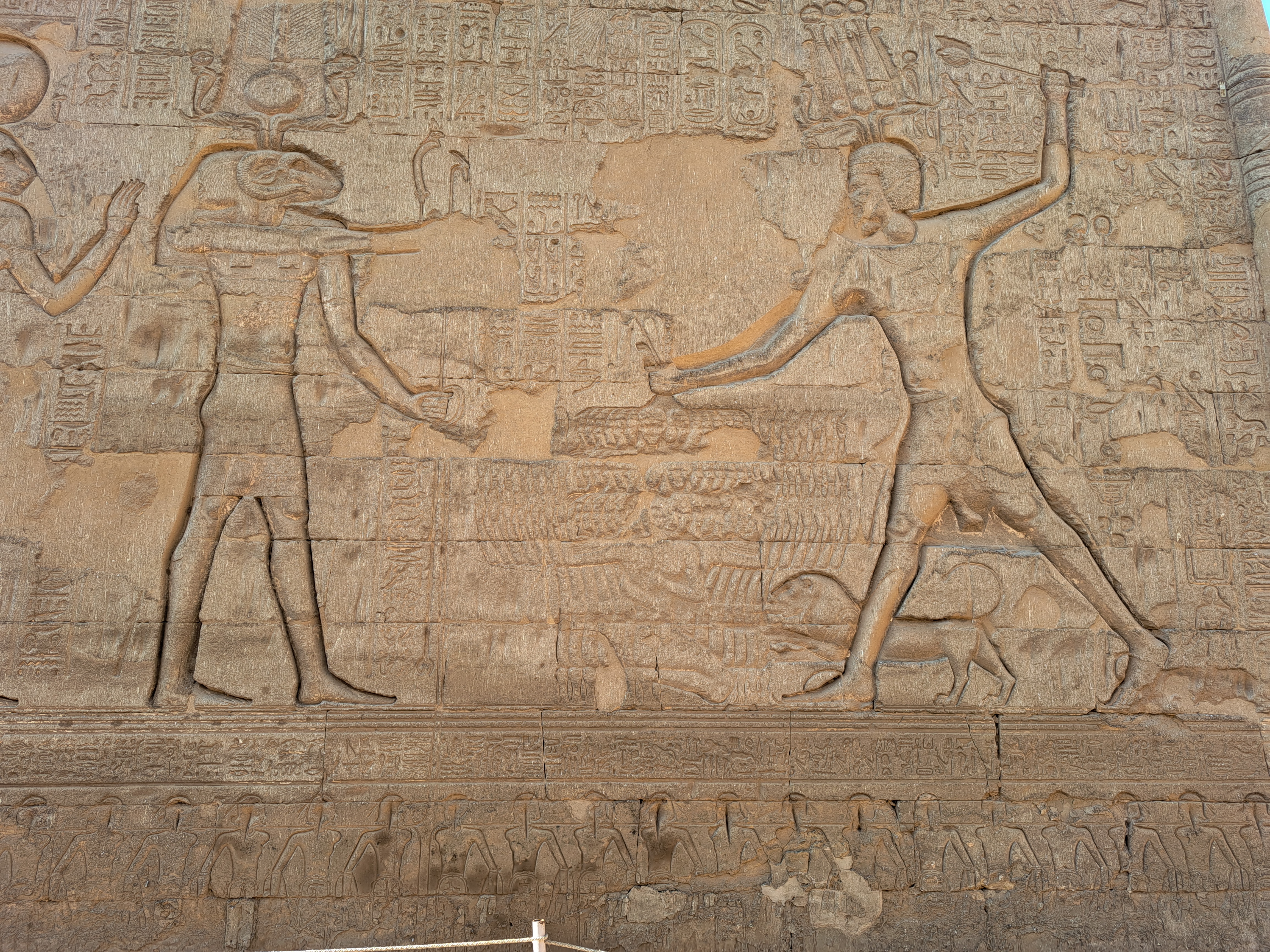 이런 식으로 이집트 신과 이집트 파라오를 그려놓은 벽화를 볼 수 있다.