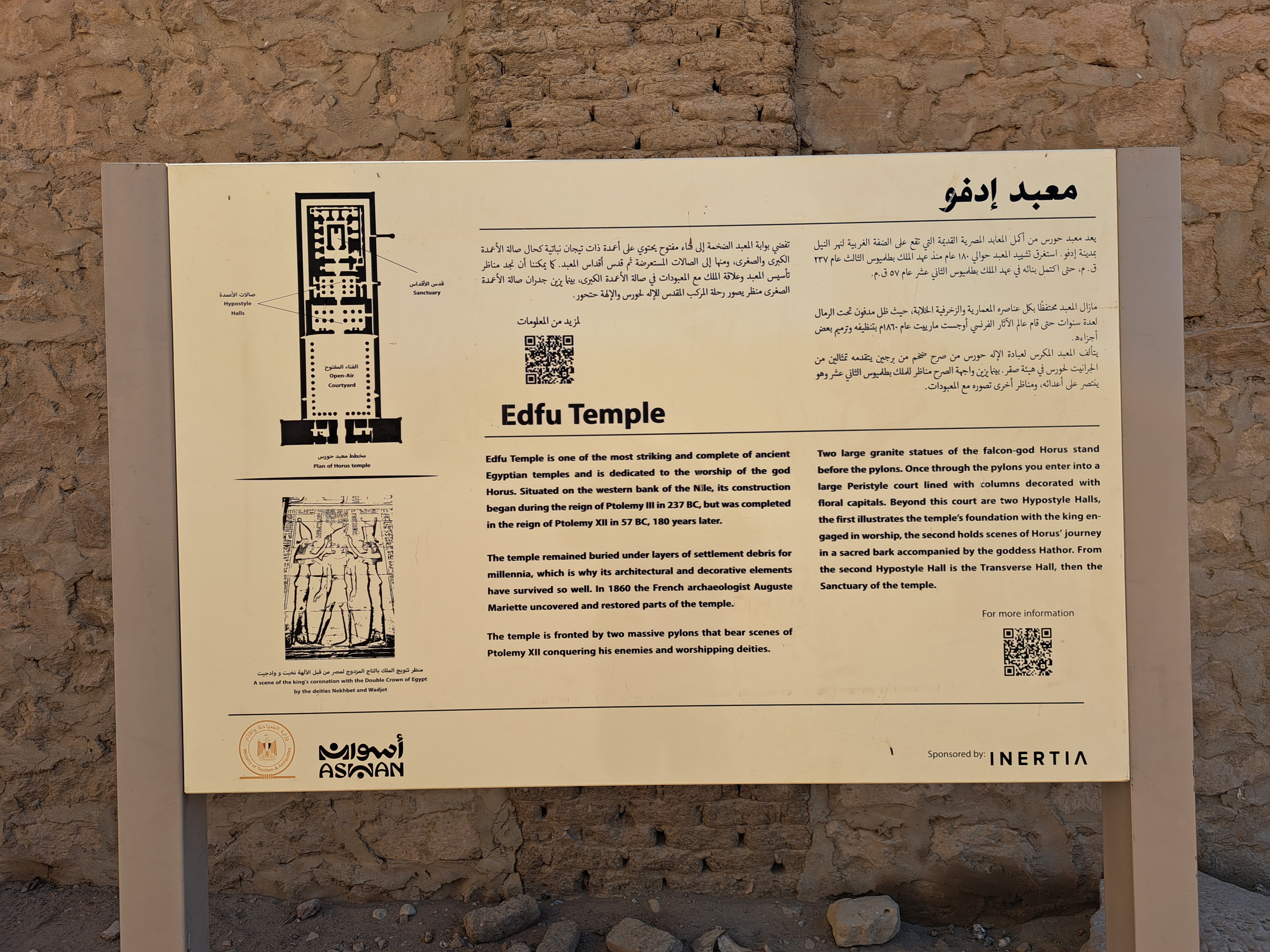 인근의 덴데라 신전, 에스나 신전, 콤 옴보 신전처럼 프톨레마이오스 왕조 시대에 지어졌다.