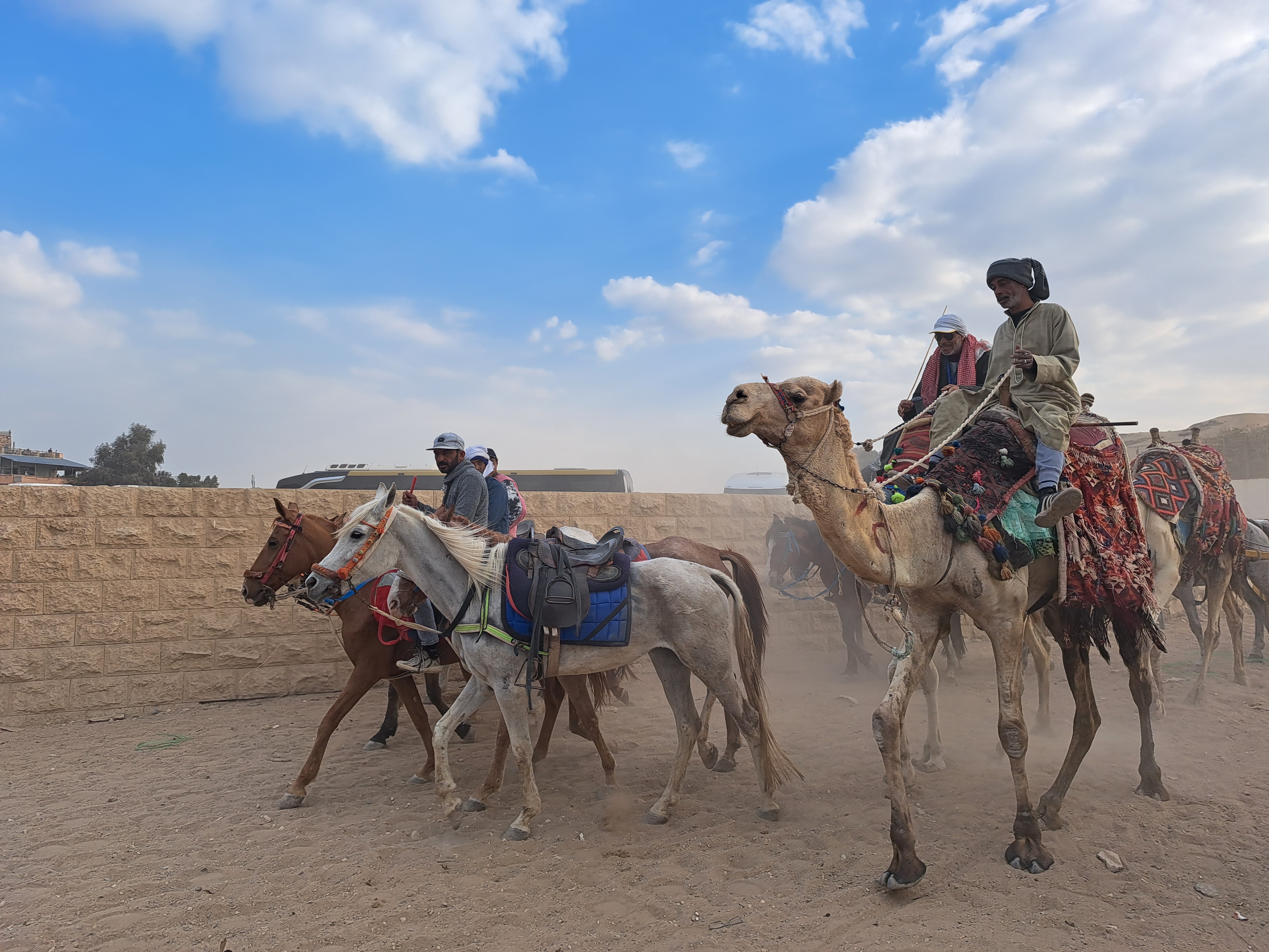 여행객을 대상으로 낙타 타기를 권유하는 이집트인이다.