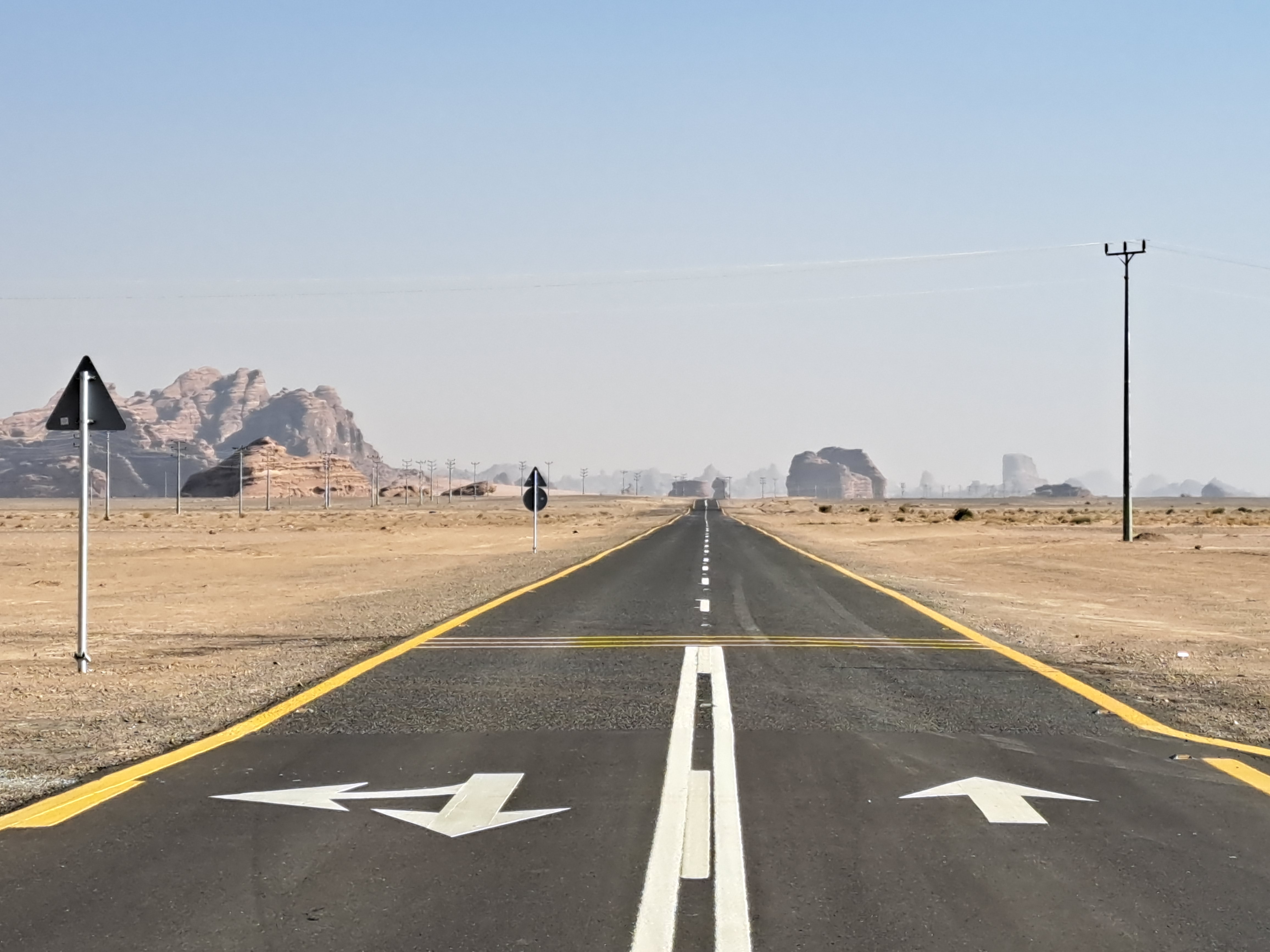 이번 포스팅은 사우디 아라비아의 풍경과 문화유산을 보는 것으로 준비하였다. 사우디 북서부에 있는 알 울라(Al-Ula)지역을 볼 것이다. 세계 최대 산유국인 사우디의 도로는 현재(2023년 2월)이렇게 생겼다. 네옴 시티가 들어서는 이 일대는 새로운 인프라 건설로 시설이 아주 좋다. 버스로 이동 중에 낙타 무리를 보고 운전 기사는 차를 세운다. 현지인은 카메라를 향해서 손을 흔드는 센스도 갖추었다. 버스에서 내린 일행들은 사진 찍기에 여념이없다. 가이드는 주의를 준다. 낙타도 야생동물이니 접근 금지라고,,, 마치 영화의 한 장면에 나오는 그런 풍경을 한 장 건졌다. 이동 중 점심시간에는 식사 후에 휴식을 즐기며 식당 마당에서 나도 현지인처럼 이렇게 자세를 잡아본다. 하루에 다섯 번씩 절하는 이슬람 문화권..
