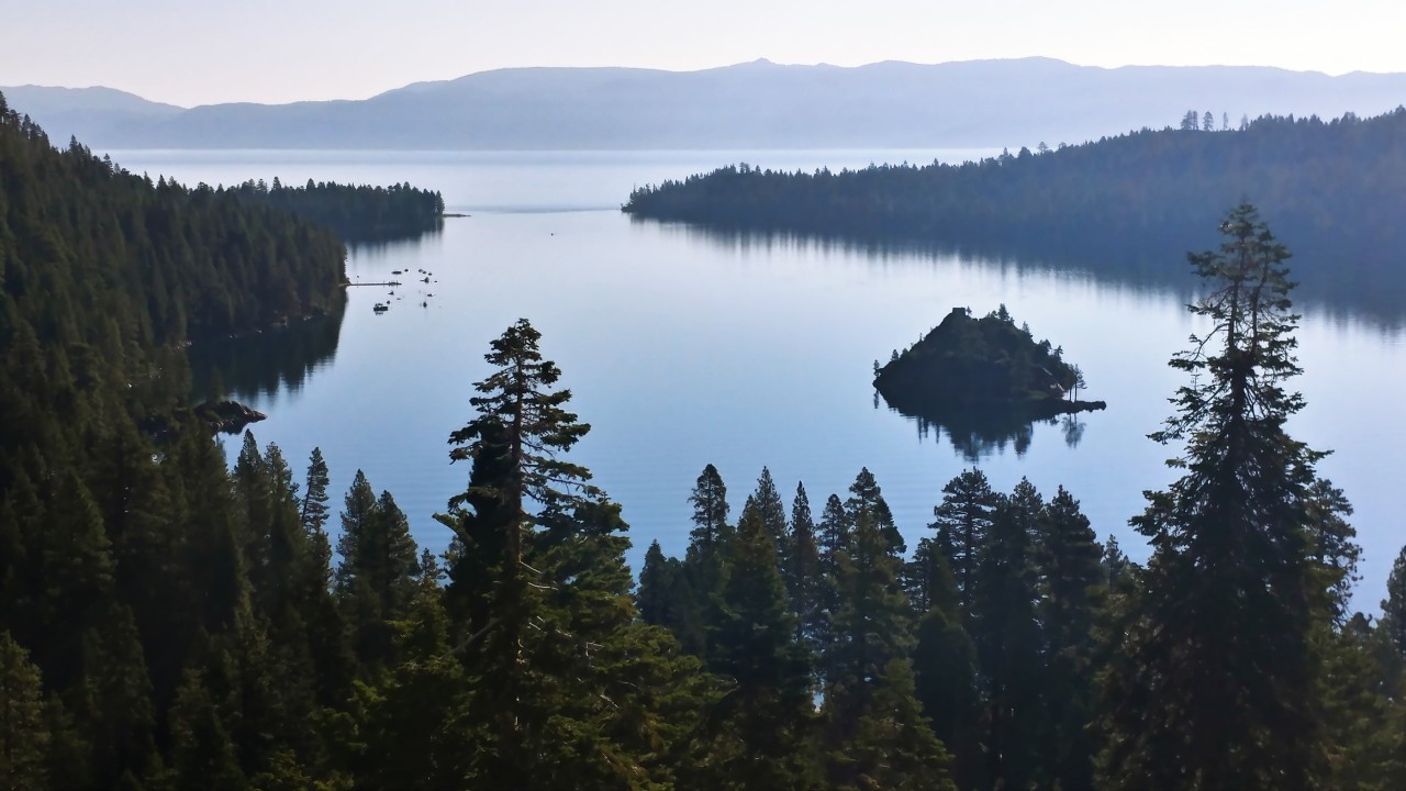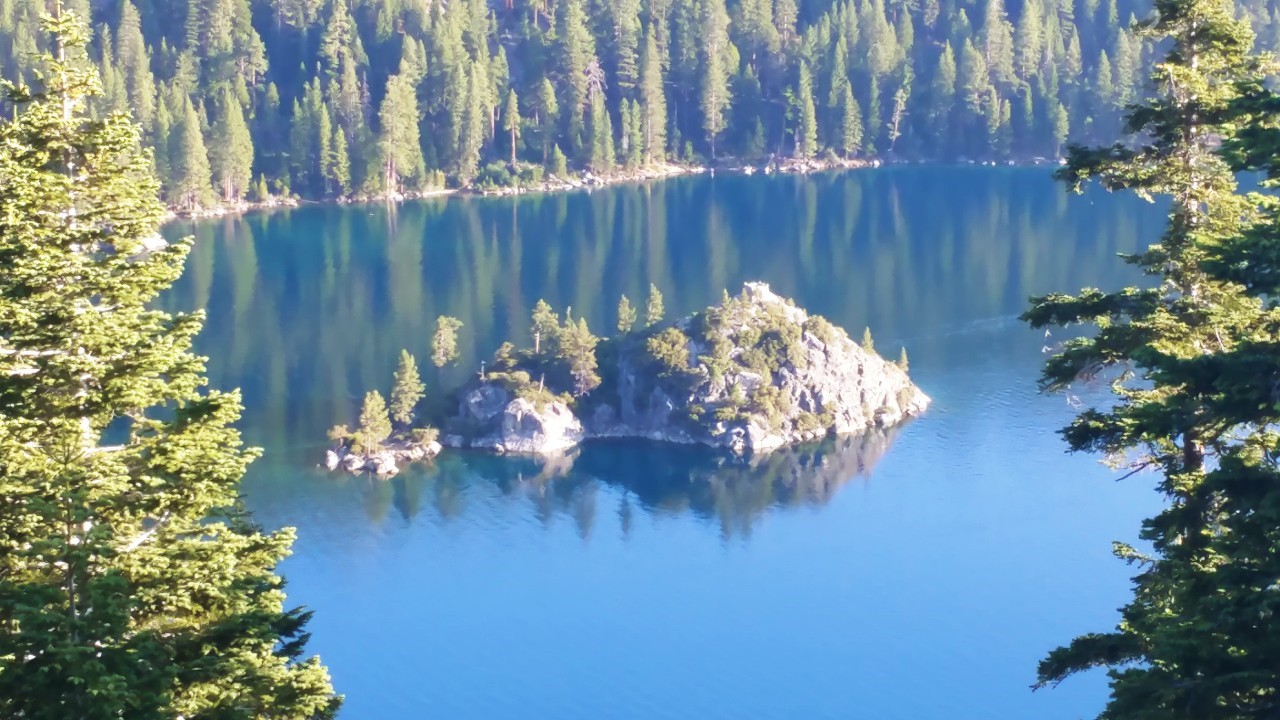 레이크 타호의 유일한 섬인 가운데 작은 파넷 섬 (Fannette Island)은